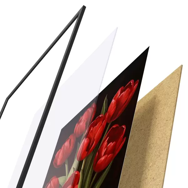 Plakat koosneb raamist, pleksiklaasist, trükitud pildist ja puitlaastplaadist alusplaadist. Tänu tagaküljel olevatele kinnitustele saab plakati kohe seinale riputada.