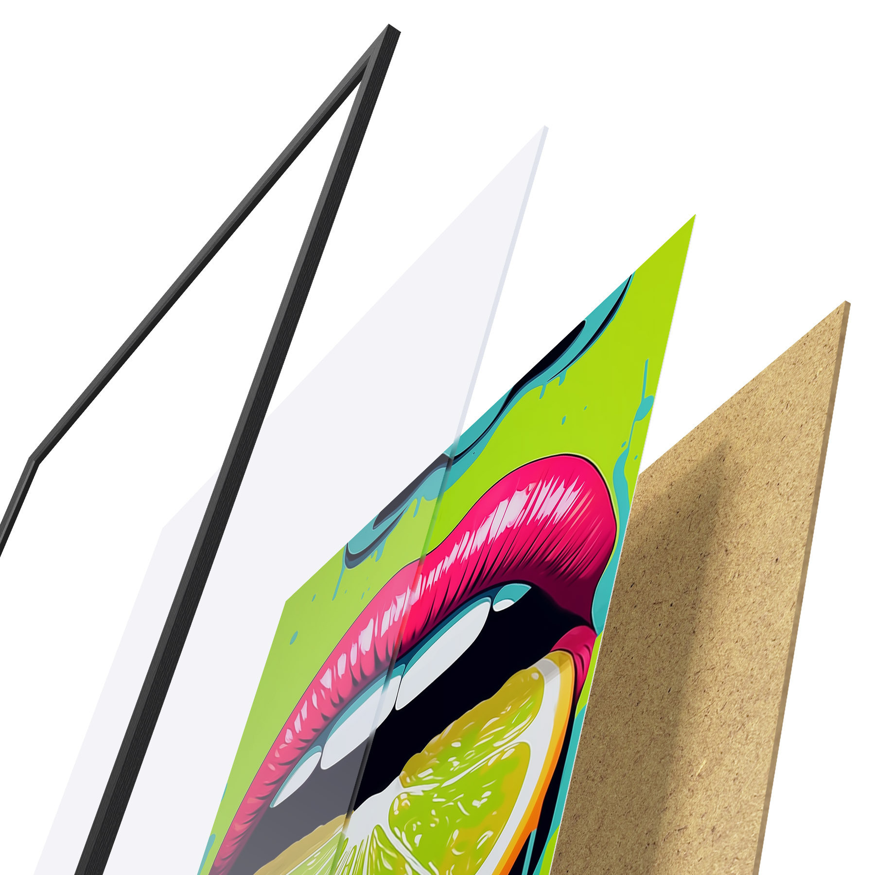 Plakat koosneb raamist, pleksiklaasist, trükitud pildist ja puitlaastplaadist alusplaadist. Tänu tagaküljel olevatele kinnitustele saab plakati kohe seinale riputada.