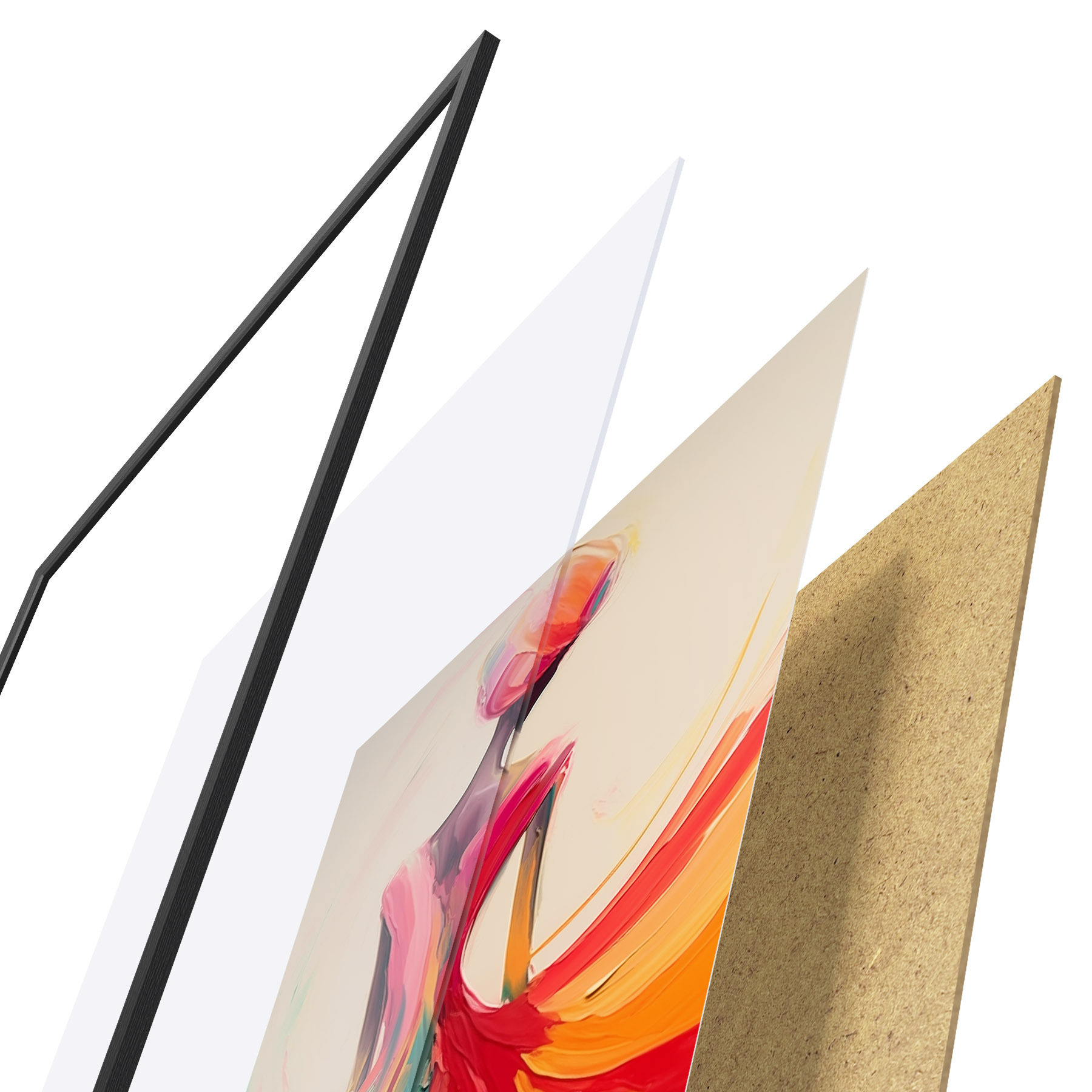 Plakat koosneb raamist, pleksiklaasist, trükitud pildist ja puitlaastplaadist alusplaadist. Tänu tagaküljel olevatele kinnitustele saab plakati kohe seinale riputada.