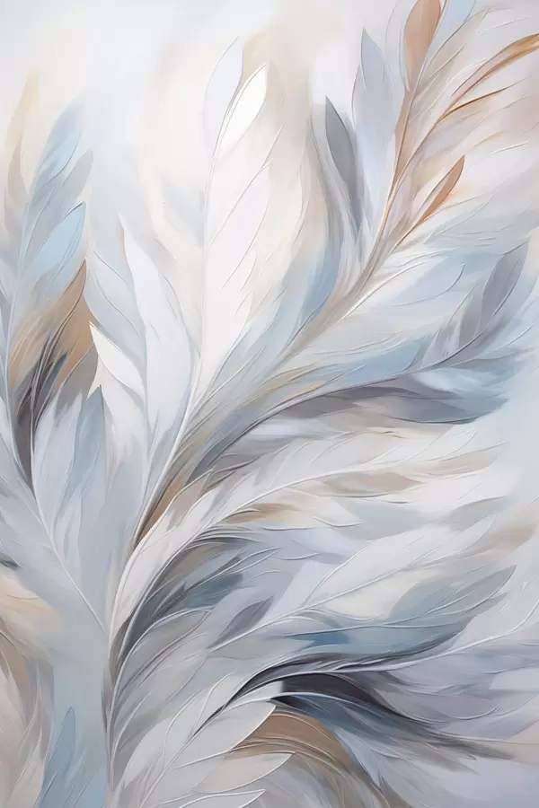 Poster Õrn helesinine ja pruun sulg pehme, õhulise tekstuuriga, valgel taustal Nr f47416