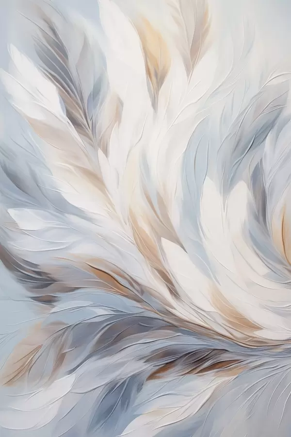Poster Abstraktne maal sulgedest valge, sinise ja pruuni toonides, pehme, voolava tekstuuri ja heleda taustaga. Nr f47417