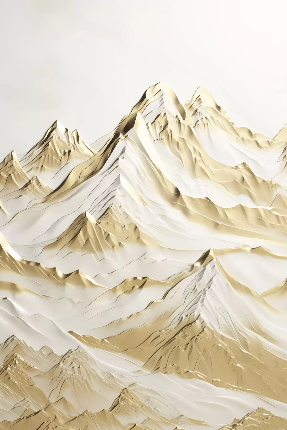 Poster Kollane maastik, lumiste mäetippude ja sügavate orgudega heleda taeva all Nr f47420