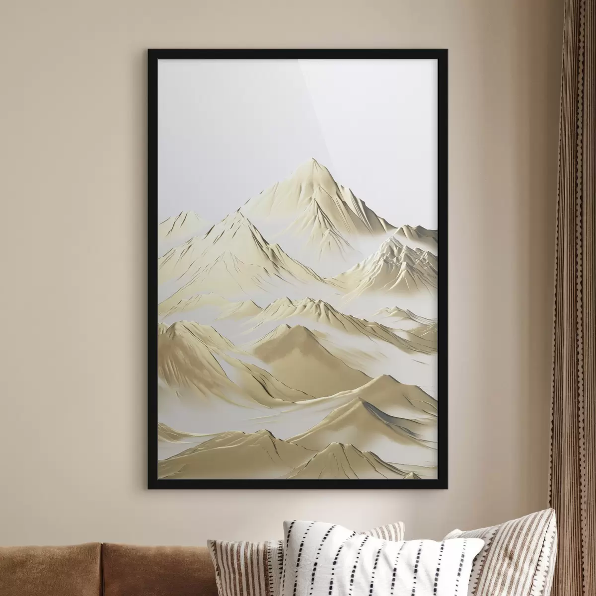 Poster Kollane maastik, lumiste mäetippude ja sügavate orgudega heleda taeva all Nr f47421