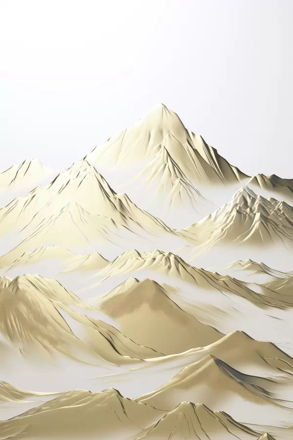 Poster Kollane maastik, lumiste mäetippude ja sügavate orgudega heleda taeva all Nr f47421