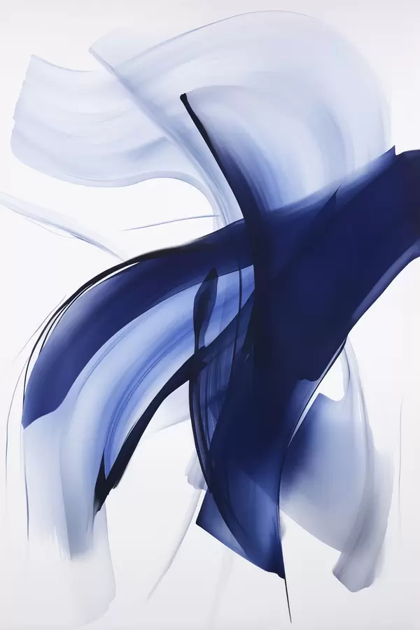 Poster Abstraktsed sinised pintslitõmbe-taolised kujundid voolavate joonte ja kõverustega valgel taustal, modernne kunst Nr f47429