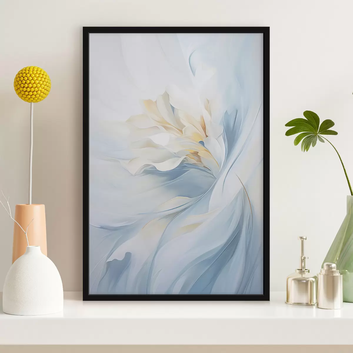 Plakat Abstraktsed õrnad, läbipaistvad kroonlehed keerlevad sissepoole pehme valguse ja maalilise tekstuuriga. f47436