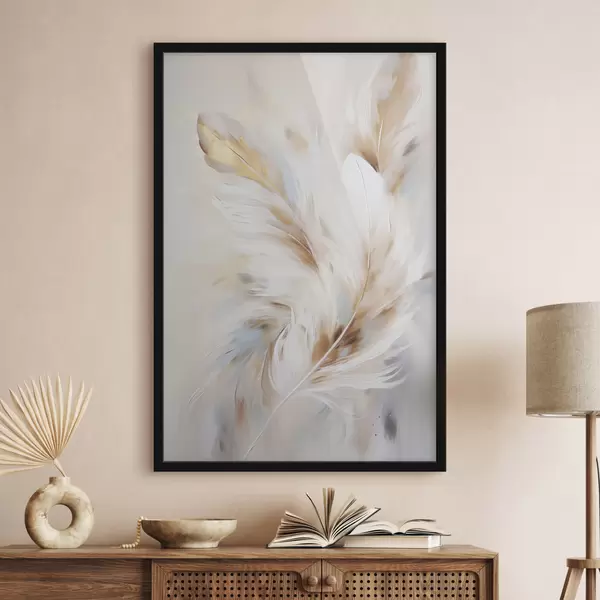Plakat Suured, pehmed suled, milles on segunenud valged, kollased ja pruunid toonid, heleda, abstraktse taustaga. f47442