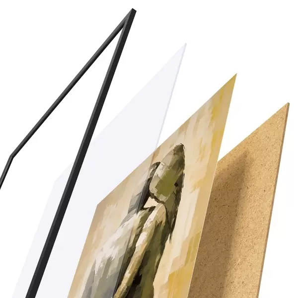 Plakat koosneb raamist, pleksiklaasist, trükitud pildist ja puitlaastplaadist alusplaadist. Tänu tagaküljel olevatele kinnitustele saab plakati kohe seinale riputada.