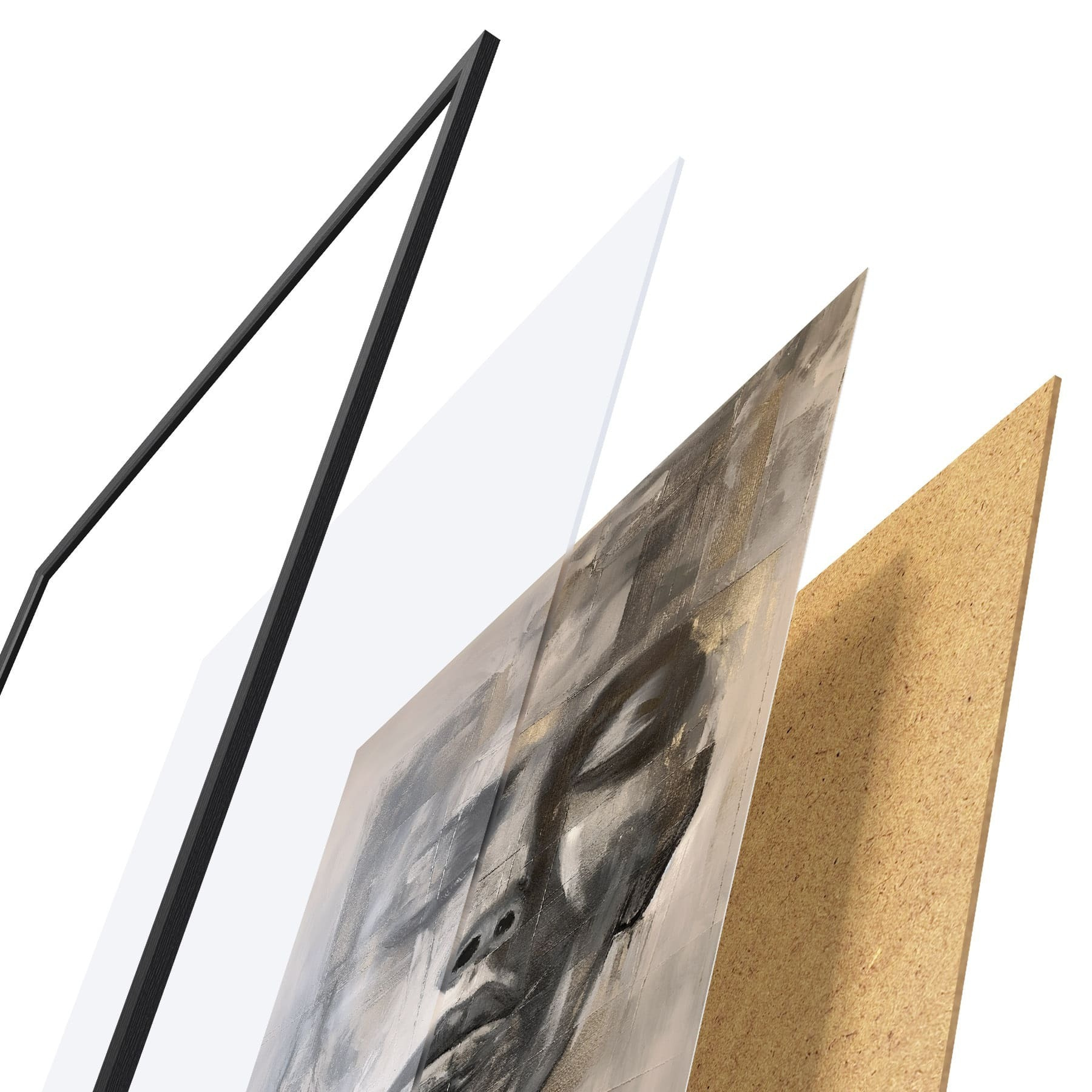 Plakat koosneb raamist, pleksiklaasist, trükitud pildist ja puitlaastplaadist alusplaadist. Tänu tagaküljel olevatele kinnitustele saab plakati kohe seinale riputada.