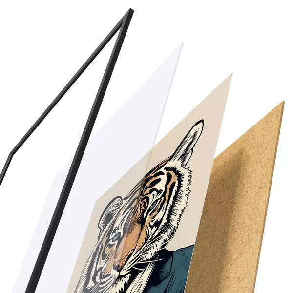 Plakat koosneb raamist, pleksiklaasist, trükitud pildist ja puitlaastplaadist alusplaadist. Tänu tagaküljel olevatele kinnitustele saab plakati kohe seinale riputada.