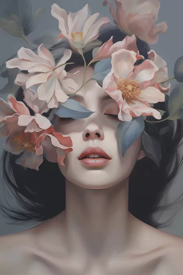 Poster Abstraktne naiseportree lilledega Nr f47488