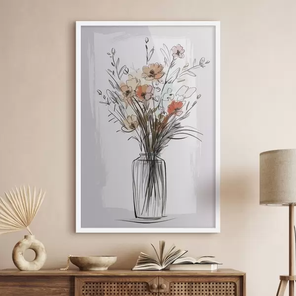 Poster Lilled vaasis joonistuse imitatsioon Nr f47495