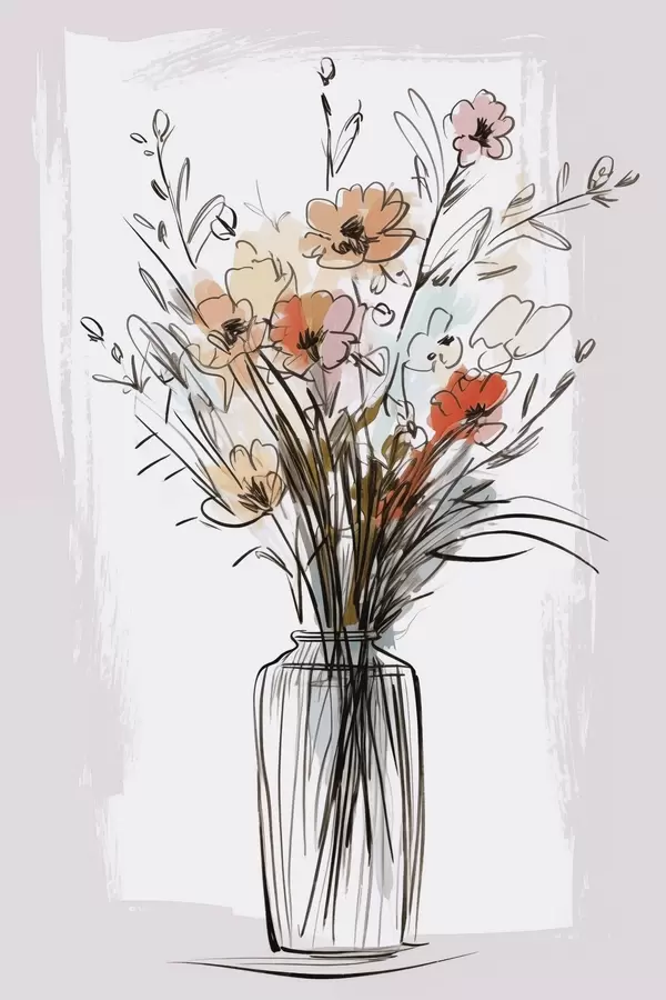 Poster Lilled vaasis joonistuse imitatsioon Nr f47495