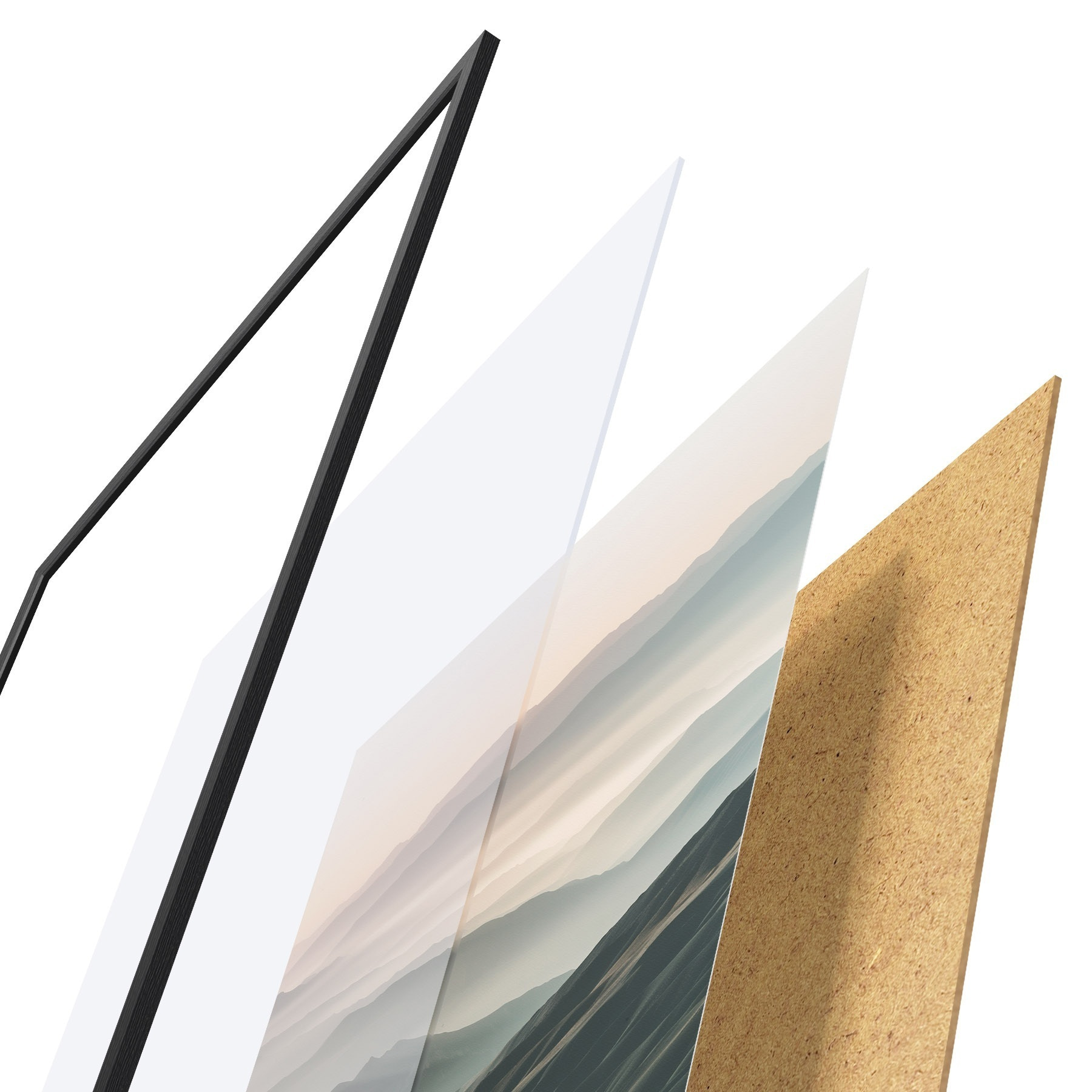 Plakat koosneb raamist, pleksiklaasist, trükitud pildist ja puitlaastplaadist alusplaadist. Tänu tagaküljel olevatele kinnitustele saab plakati kohe seinale riputada.