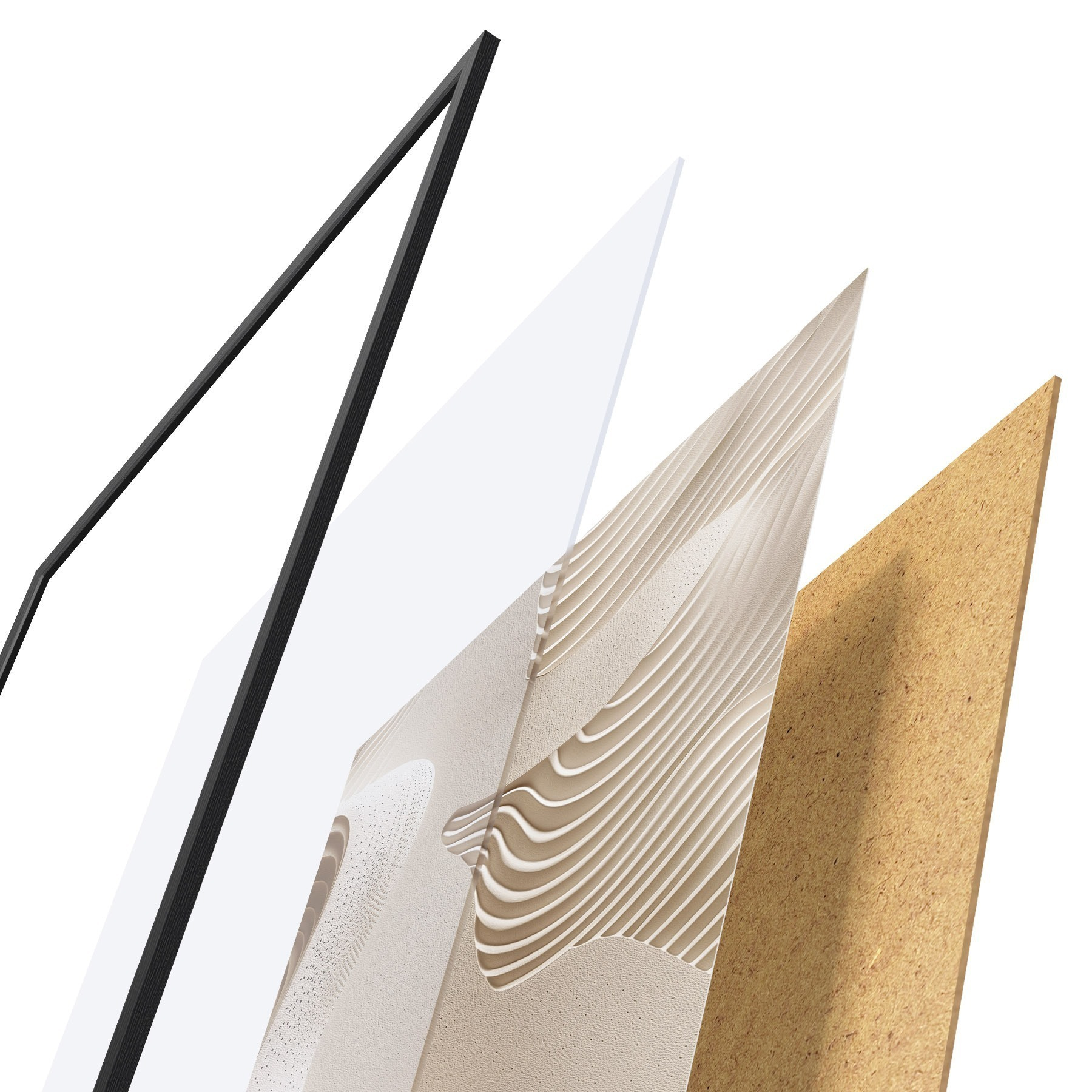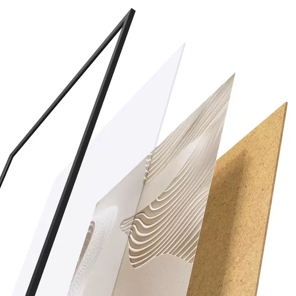 Plakat koosneb raamist, pleksiklaasist, trükitud pildist ja puitlaastplaadist alusplaadist. Tänu tagaküljel olevatele kinnitustele saab plakati kohe seinale riputada.