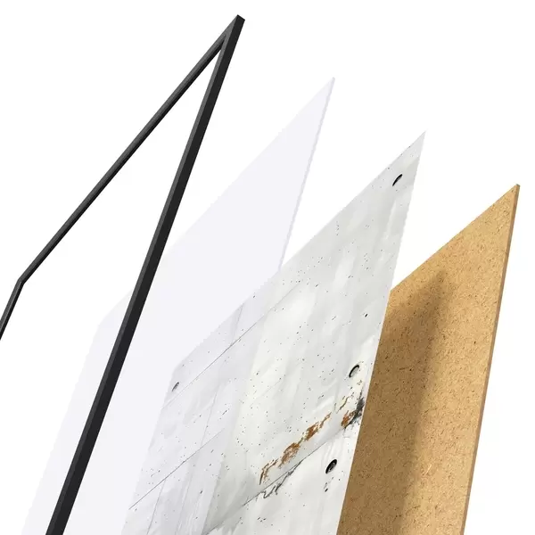 Plakat koosneb raamist, pleksiklaasist, trükitud pildist ja puitlaastplaadist alusplaadist. Tänu tagaküljel olevatele kinnitustele saab plakati kohe seinale riputada.