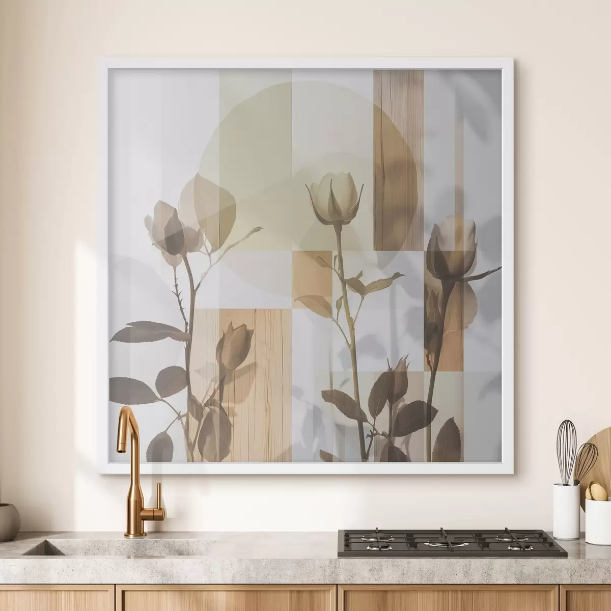 Poster Abstraktsioon lilledega ja geomeetriliste kujunditega Nr f47654