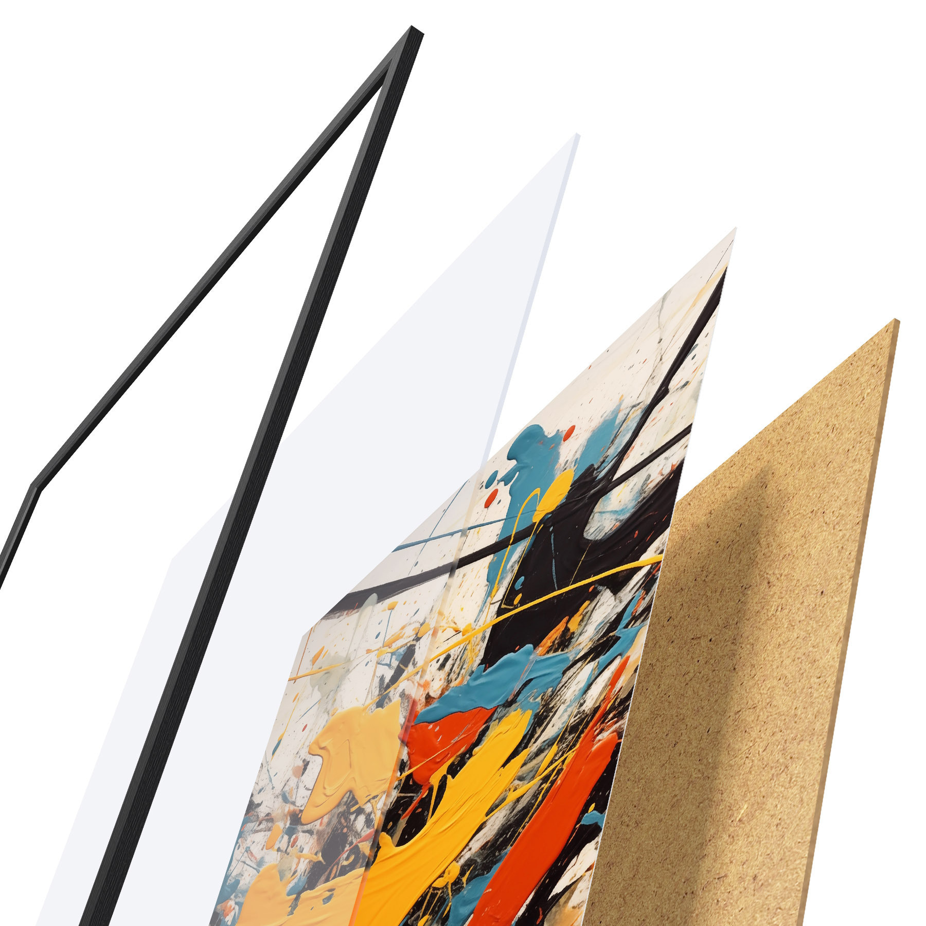 Plakat koosneb raamist, pleksiklaasist, trükitud pildist ja puitlaastplaadist alusplaadist. Tänu tagaküljel olevatele kinnitustele saab plakati kohe seinale riputada.