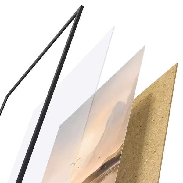 Plakat koosneb raamist, pleksiklaasist, trükitud pildist ja puitlaastplaadist alusplaadist. Tänu tagaküljel olevatele kinnitustele saab plakati kohe seinale riputada.