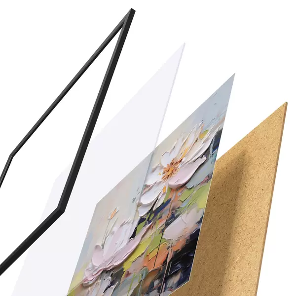 Plakat koosneb raamist, pleksiklaasist, trükitud pildist ja puitlaastplaadist alusplaadist. Tänu tagaküljel olevatele kinnitustele saab plakati kohe seinale riputada.