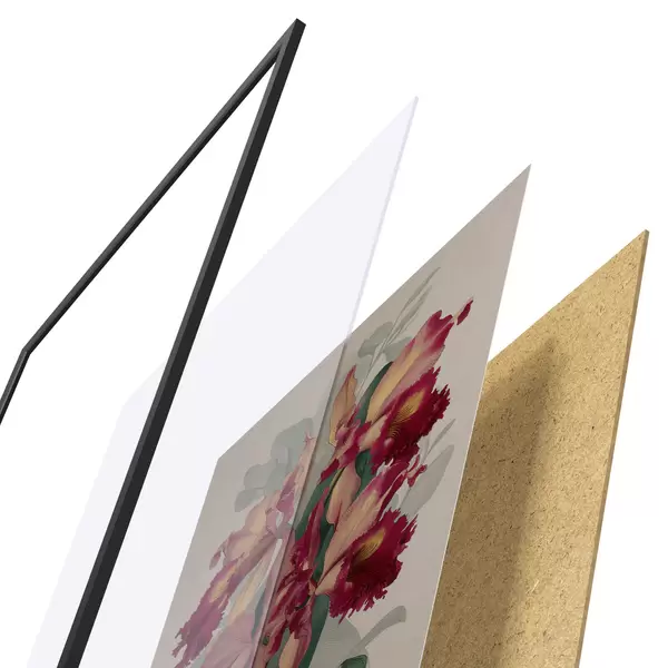 Plakat koosneb raamist, pleksiklaasist, trükitud pildist ja puitlaastplaadist alusplaadist. Tänu tagaküljel olevatele kinnitustele saab plakati kohe seinale riputada.