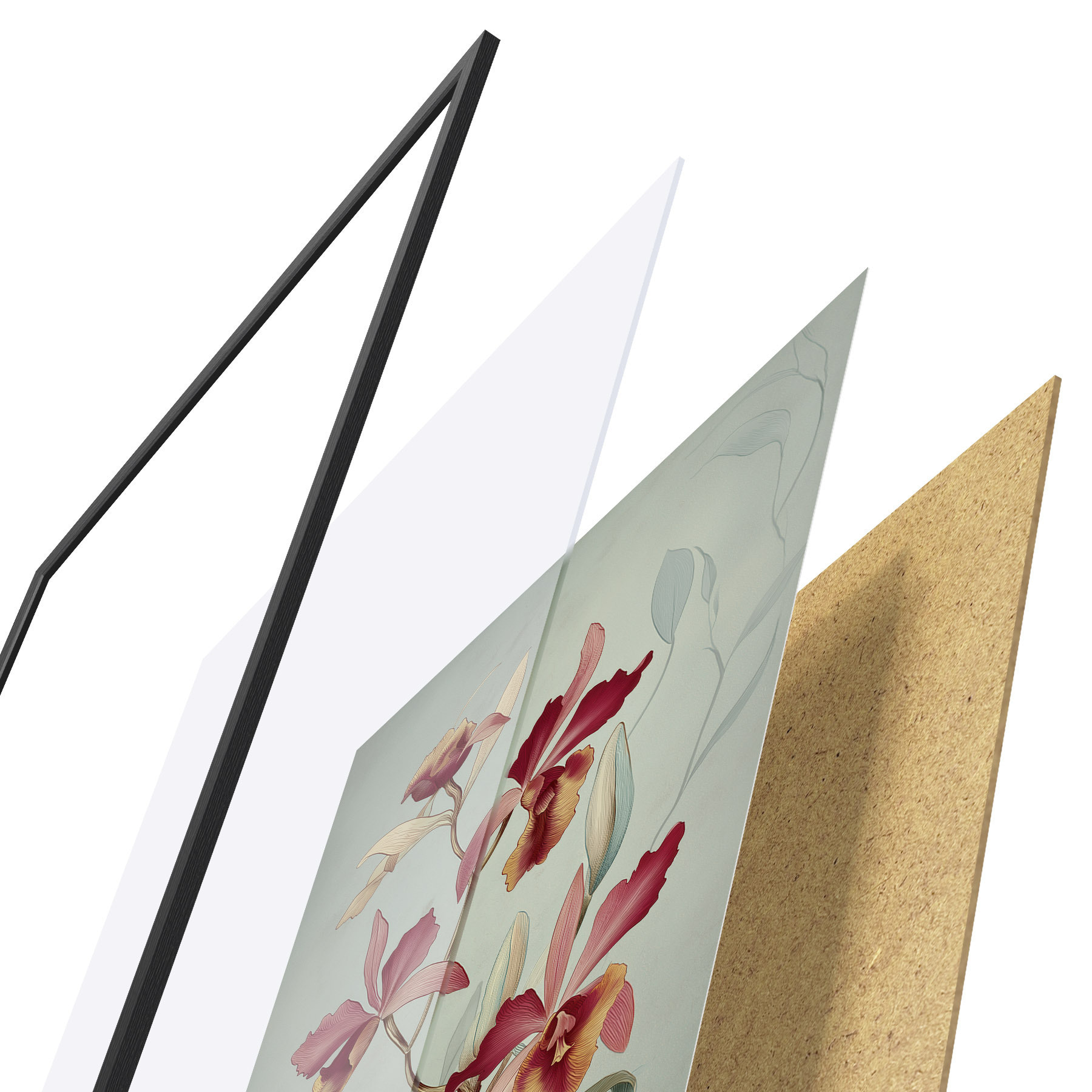Plakat koosneb raamist, pleksiklaasist, trükitud pildist ja puitlaastplaadist alusplaadist. Tänu tagaküljel olevatele kinnitustele saab plakati kohe seinale riputada.