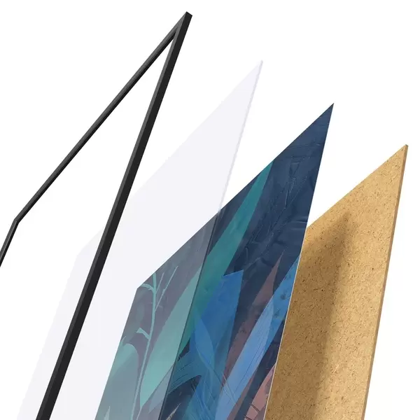 Plakat koosneb raamist, pleksiklaasist, trükitud pildist ja puitlaastplaadist alusplaadist. Tänu tagaküljel olevatele kinnitustele saab plakati kohe seinale riputada.