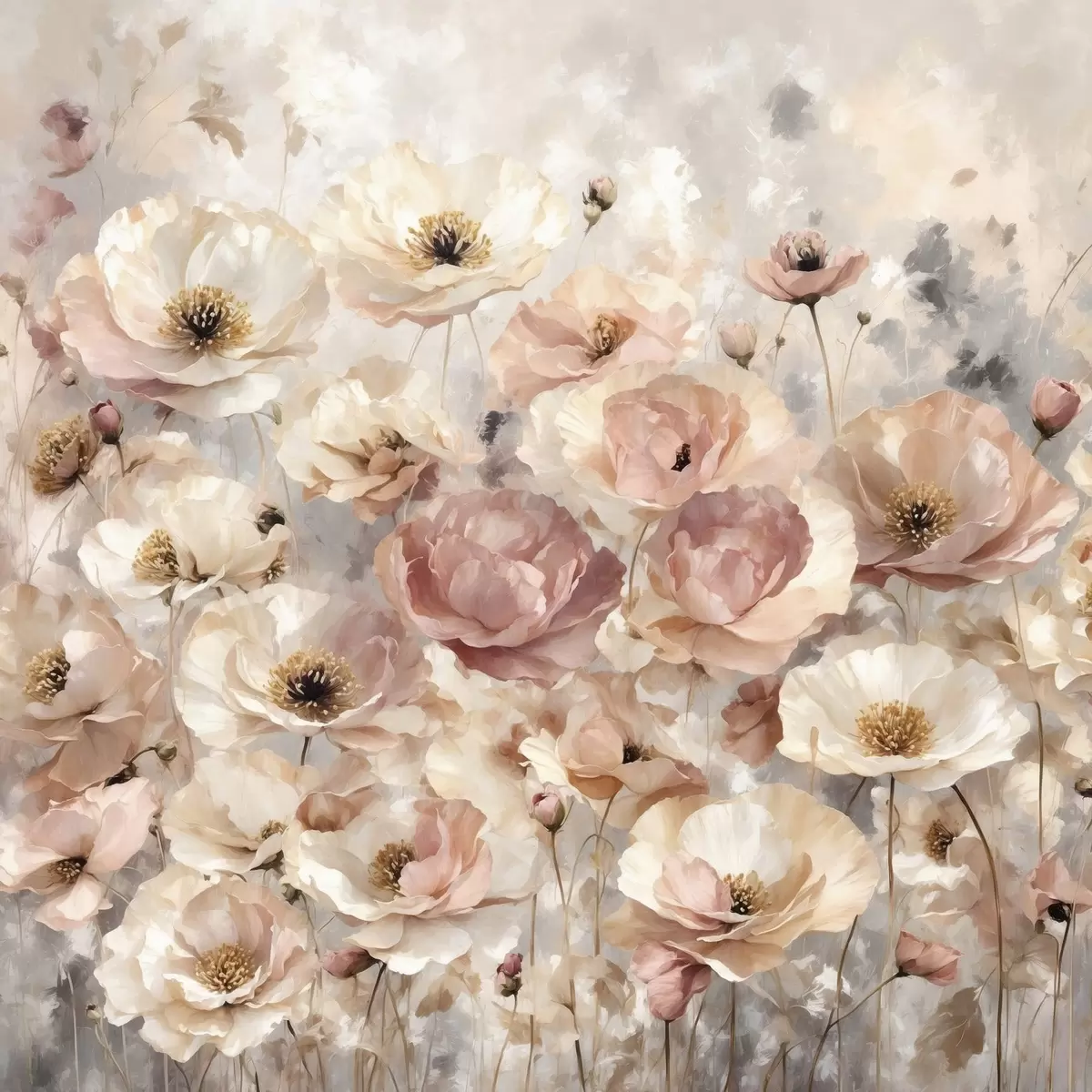 Poster Pehme toonidega valgete lillede väli Nr f47757
