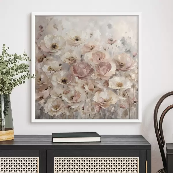 Plakat Pehme toonidega valgete lillede väli f47757
