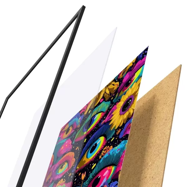 Plakat koosneb raamist, pleksiklaasist, trükitud pildist ja puitlaastplaadist alusplaadist. Tänu tagaküljel olevatele kinnitustele saab plakati kohe seinale riputada.