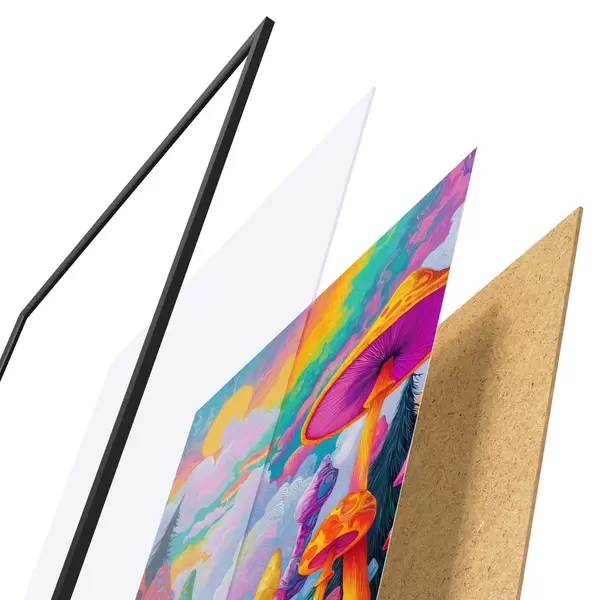 Plakat koosneb raamist, pleksiklaasist, trükitud pildist ja puitlaastplaadist alusplaadist. Tänu tagaküljel olevatele kinnitustele saab plakati kohe seinale riputada.