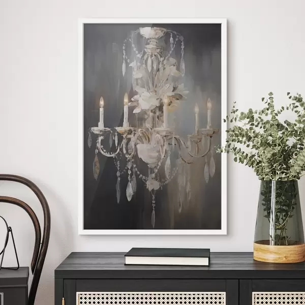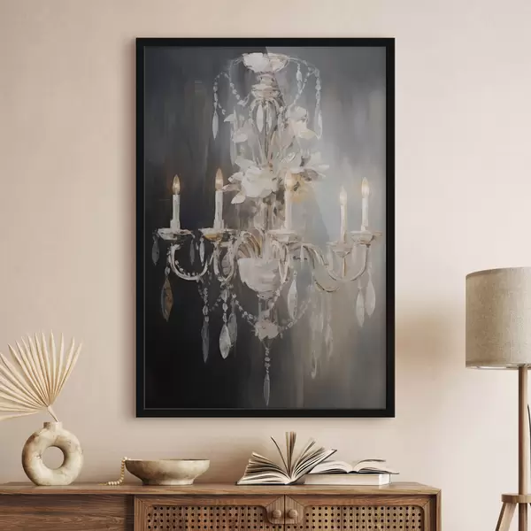 Poster Abstraktne kaunistatud lühtri kujutis süüdatud küünaldega ja lillede motiividega tumedal tekstuurse taustaga Nr f47857