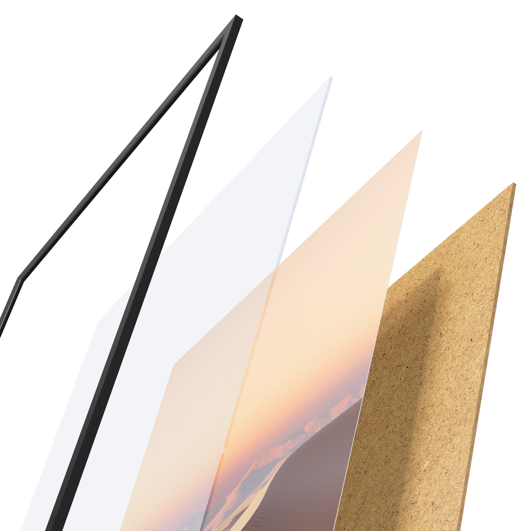 Plakat koosneb raamist, pleksiklaasist, trükitud pildist ja puitlaastplaadist alusplaadist. Tänu tagaküljel olevatele kinnitustele saab plakati kohe seinale riputada.