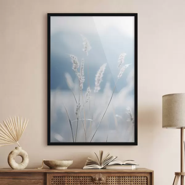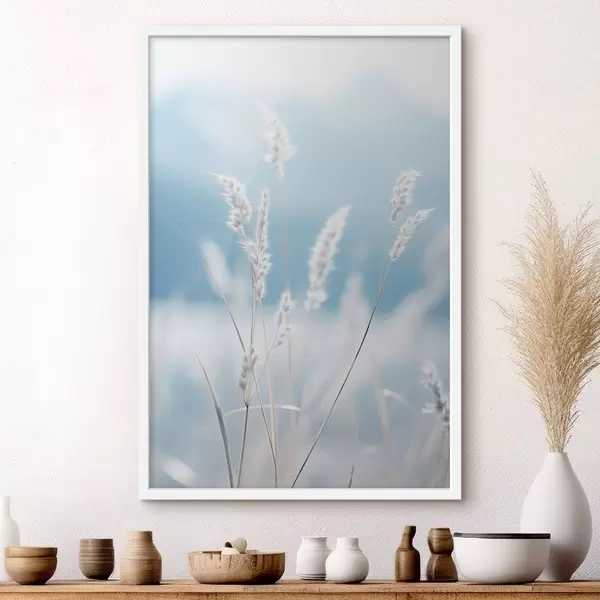 Poster Valge kohev muru pehme sinise taeva taustal, madala teravussügavusega Nr f47880