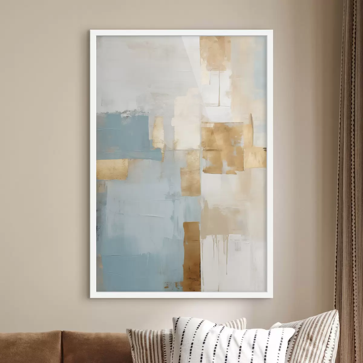 Poster Abstraktsed geomeetrilised kujundid kollase, sinise ja valge värviga, tekstuuriga ja minimalistlik kompositsioon Nr f47882