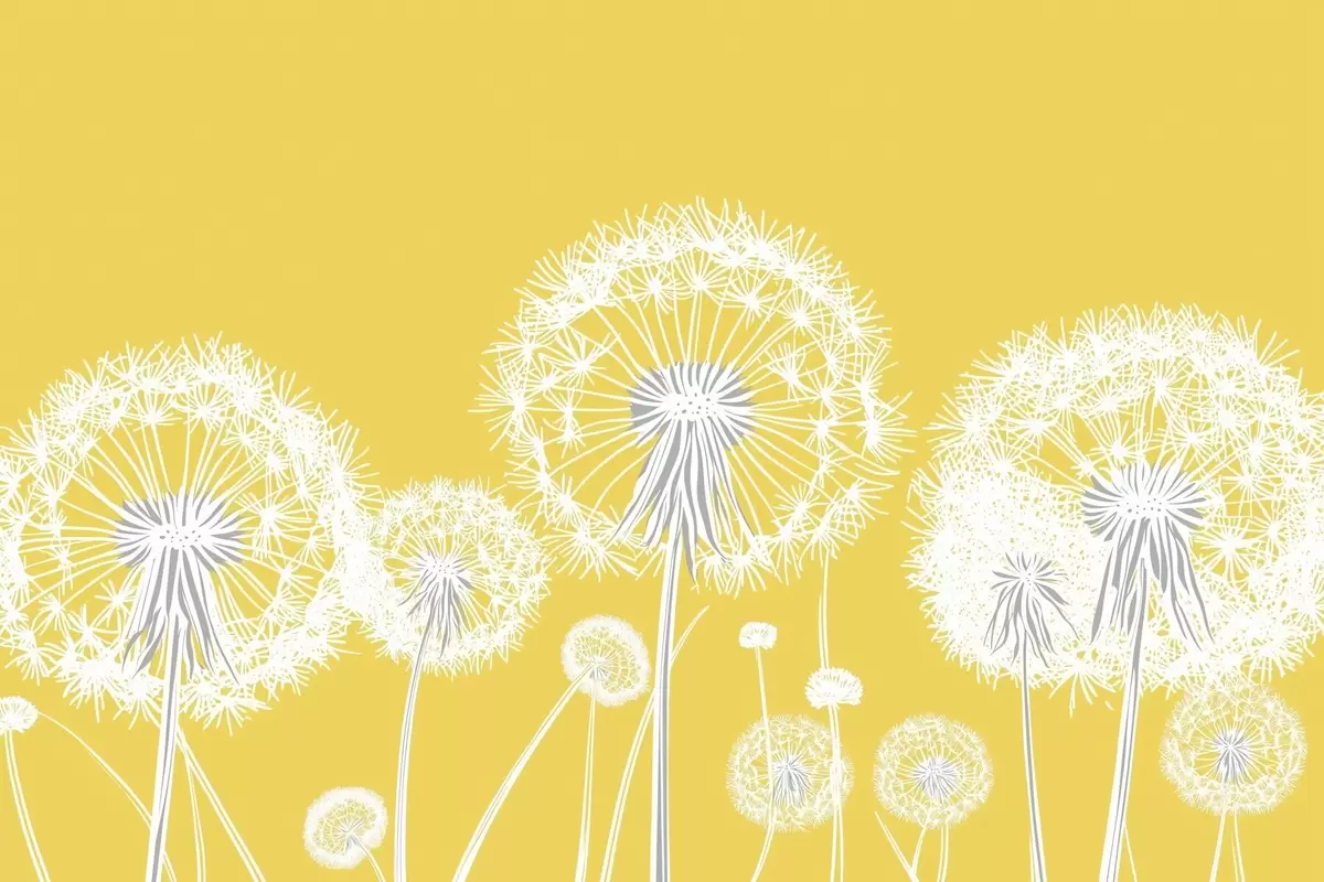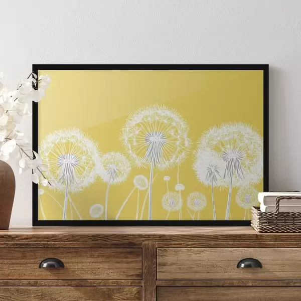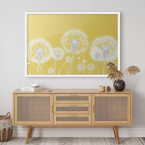 Plakat Valged võililled kollasel taustal f47890