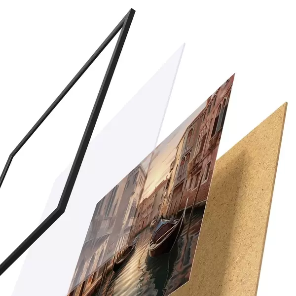 Plakat koosneb raamist, pleksiklaasist, trükitud pildist ja puitlaastplaadist alusplaadist. Tänu tagaküljel olevatele kinnitustele saab plakati kohe seinale riputada.