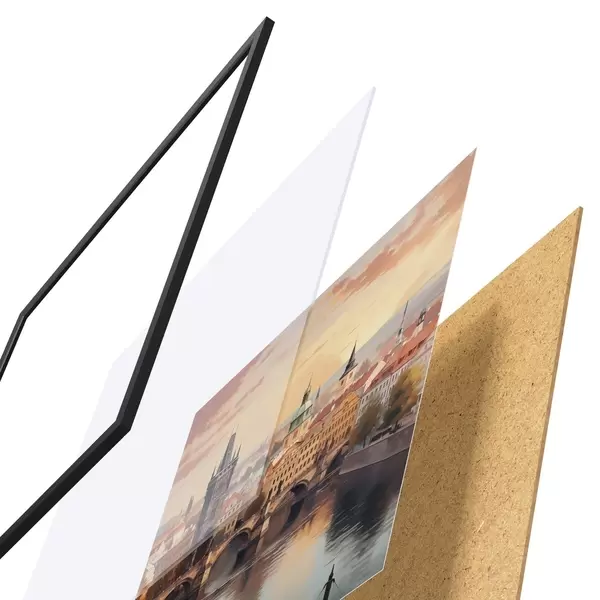 Plakat koosneb raamist, pleksiklaasist, trükitud pildist ja puitlaastplaadist alusplaadist. Tänu tagaküljel olevatele kinnitustele saab plakati kohe seinale riputada.