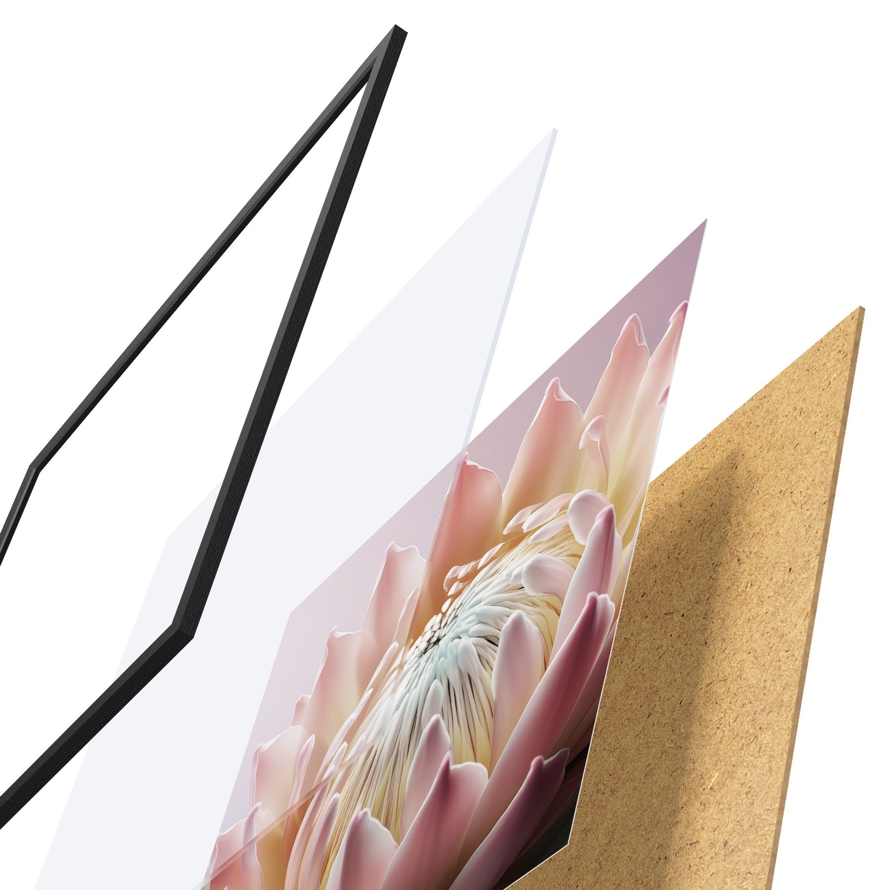 Plakat koosneb raamist, pleksiklaasist, trükitud pildist ja puitlaastplaadist alusplaadist. Tänu tagaküljel olevatele kinnitustele saab plakati kohe seinale riputada.