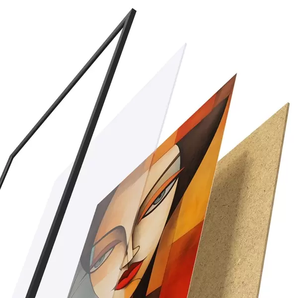 Plakat koosneb raamist, pleksiklaasist, trükitud pildist ja puitlaastplaadist alusplaadist. Tänu tagaküljel olevatele kinnitustele saab plakati kohe seinale riputada.