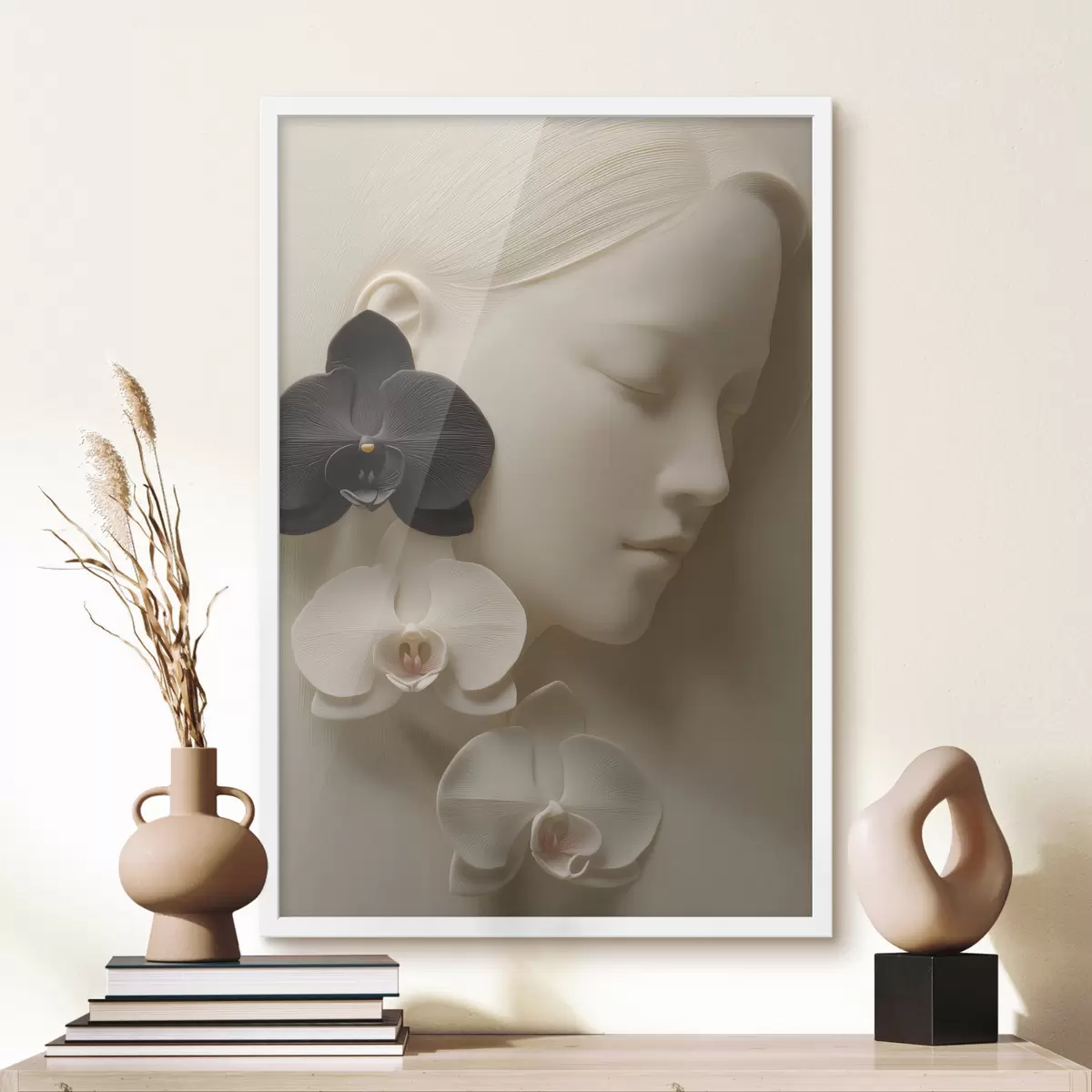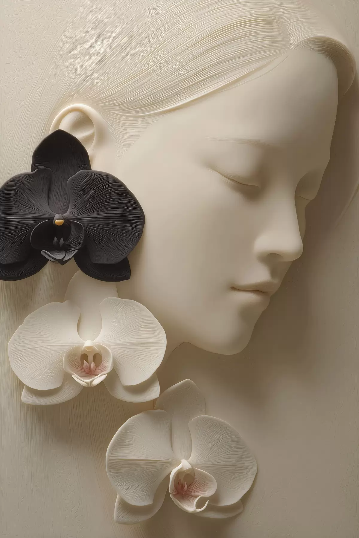 Plakat tüdruk orhideedega bas-reljeefi stiilis f47941
