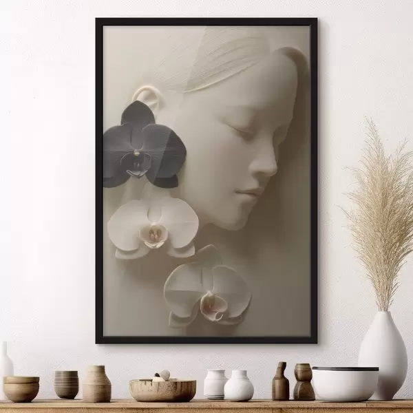 Poster tüdruk orhideedega bas-reljeefi stiilis Nr f47941