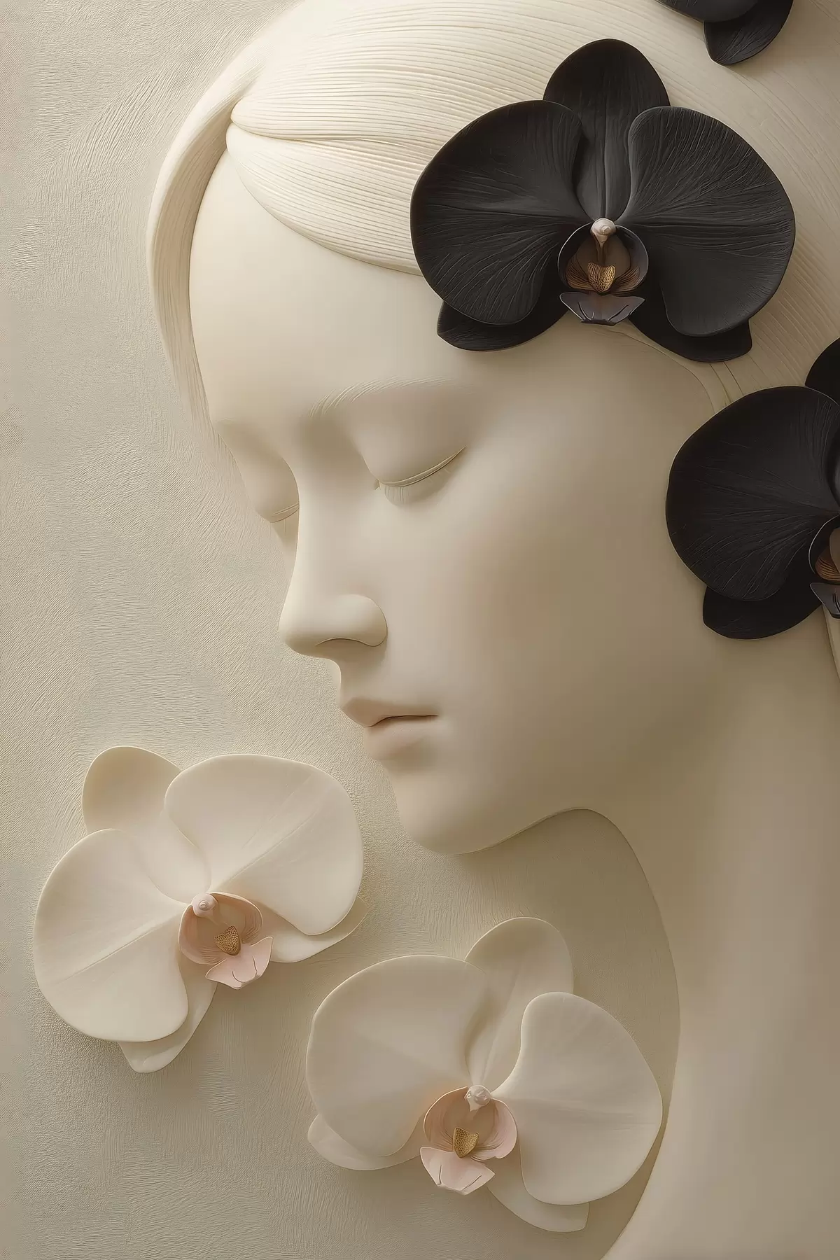 Plakat tüdruk orhideedega bas-reljeefi stiilis f47942
