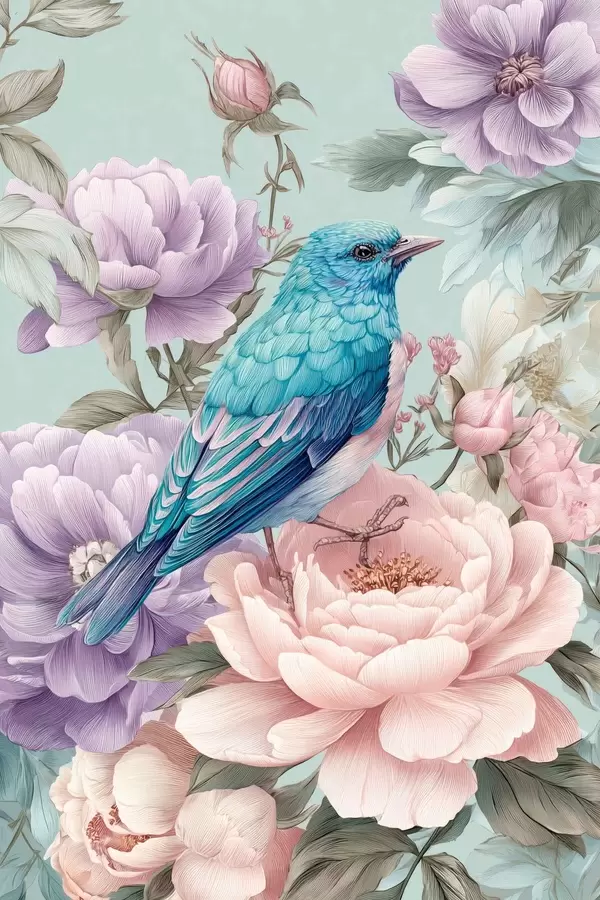 Poster laulvad linnud roosides Nr f47943