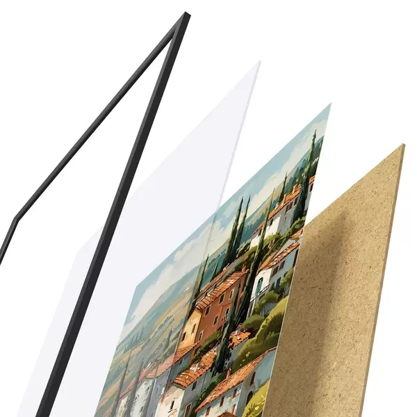 Plakat koosneb raamist, pleksiklaasist, trükitud pildist ja puitlaastplaadist alusplaadist. Tänu tagaküljel olevatele kinnitustele saab plakati kohe seinale riputada.