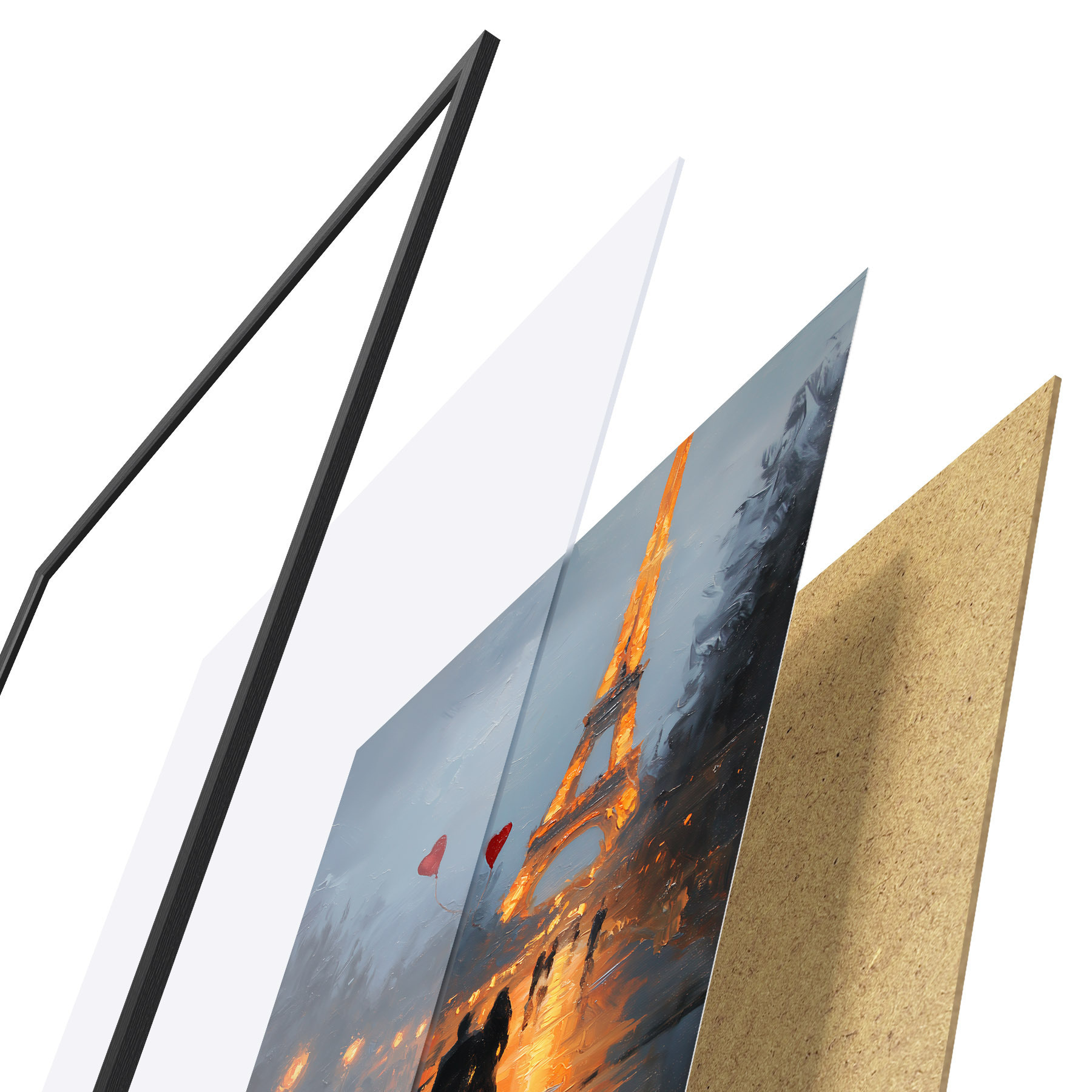 Plakat koosneb raamist, pleksiklaasist, trükitud pildist ja puitlaastplaadist alusplaadist. Tänu tagaküljel olevatele kinnitustele saab plakati kohe seinale riputada.
