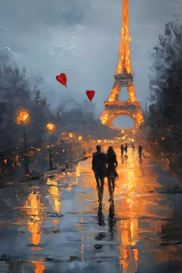 Plakat romantiline jalutuskäik Pariisis õlimaalistiilis f47952