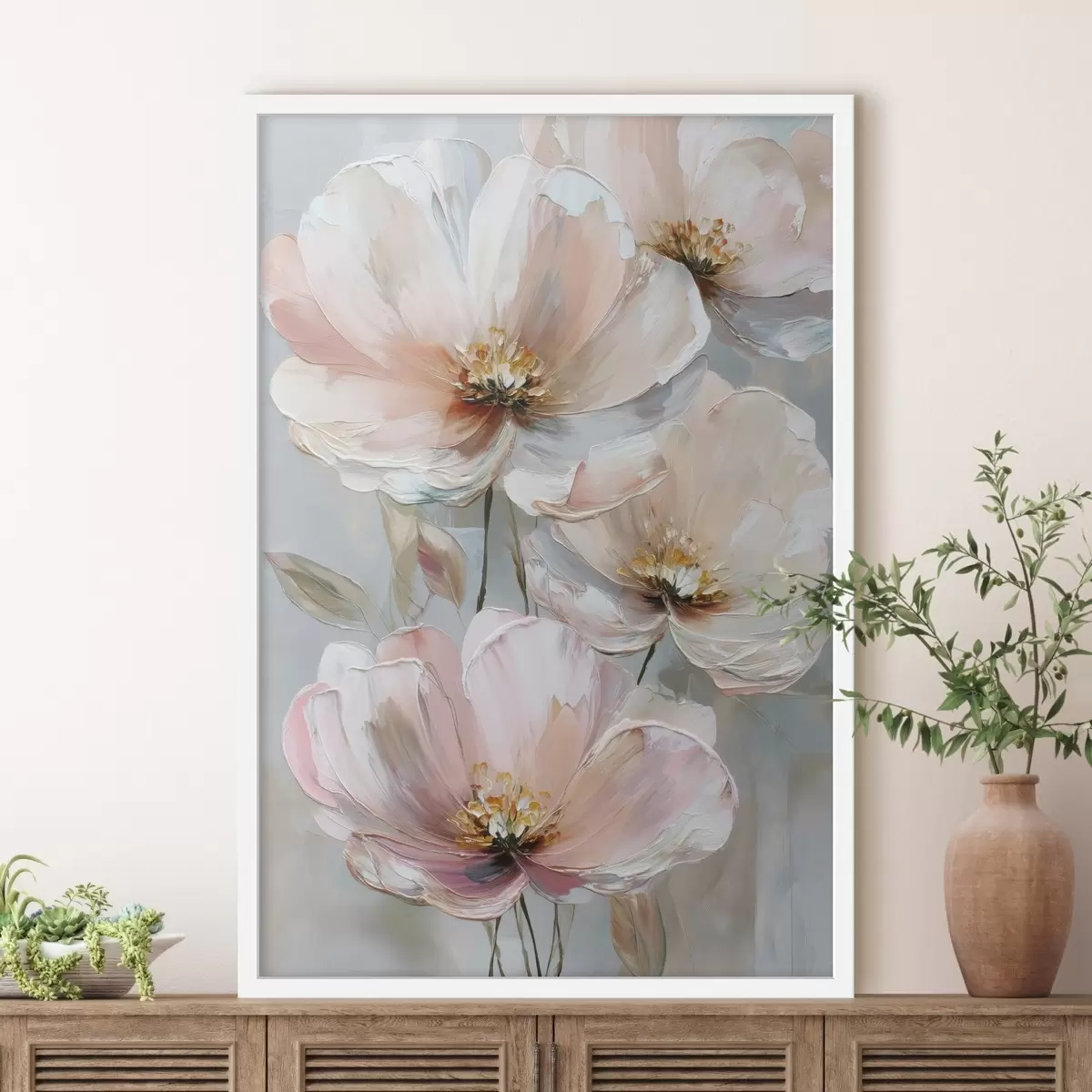 Plakat Valge-roosad lilled väljendusrikaste pintslitõmmetega õlimaalistiilis f47962