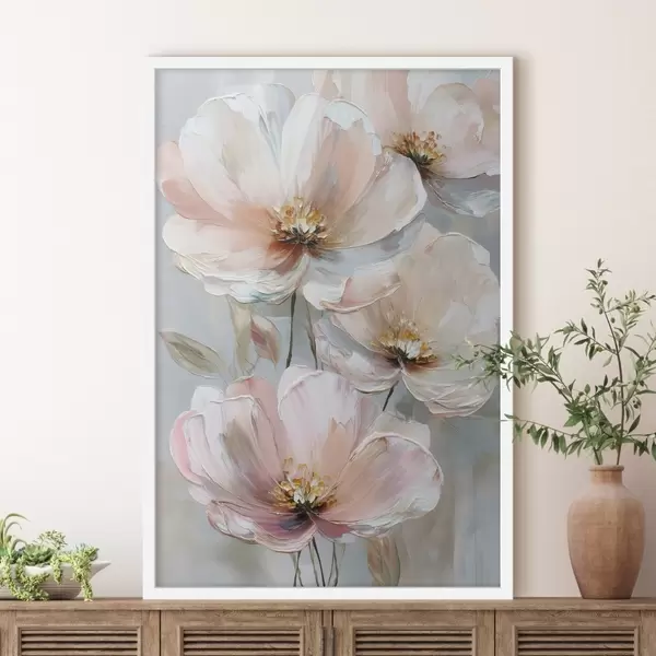 Poster Valge-roosad lilled väljendusrikaste pintslitõmmetega õlimaalistiilis Nr f47962