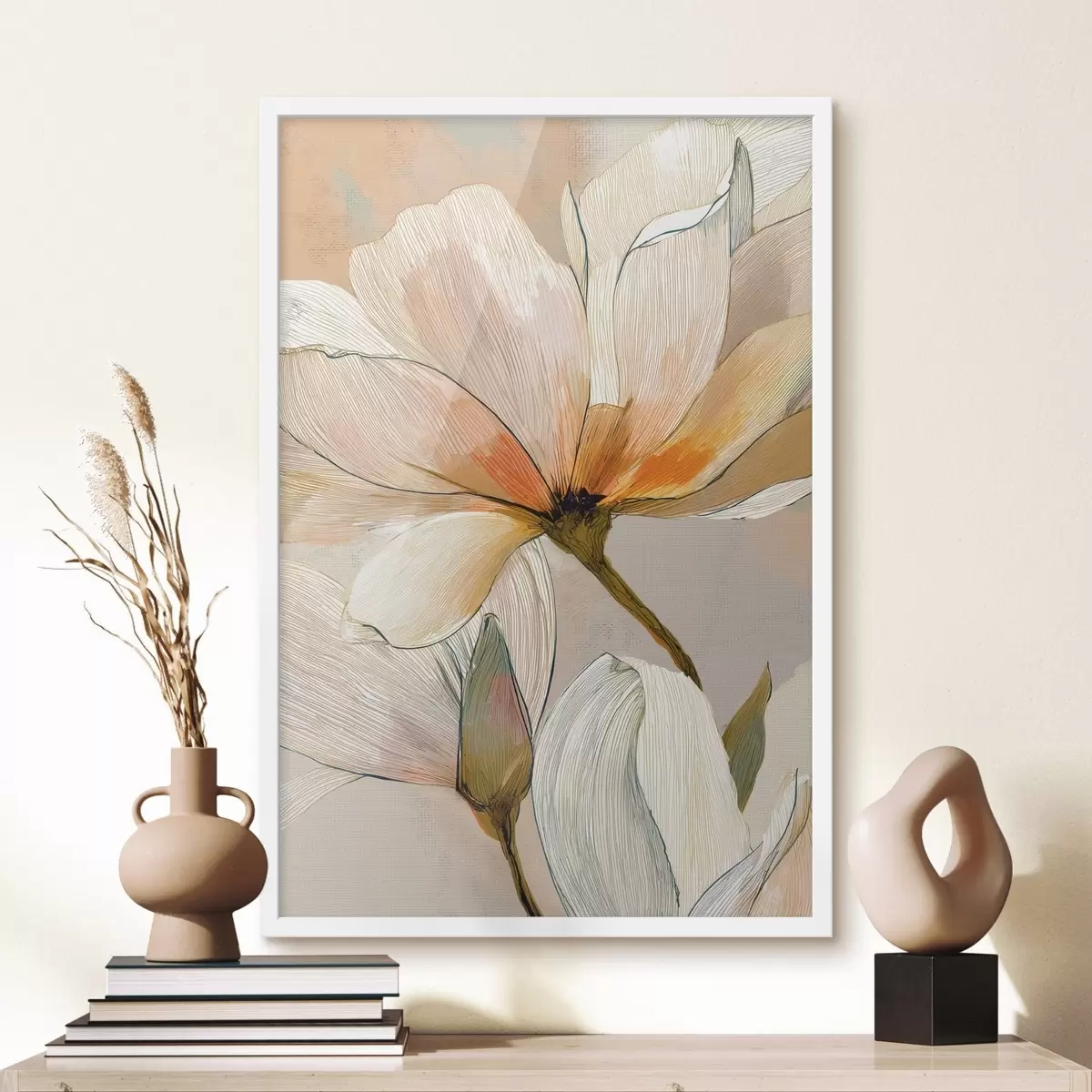 Plakat Lilleseade virsiku- ja sinistes toonides f47969